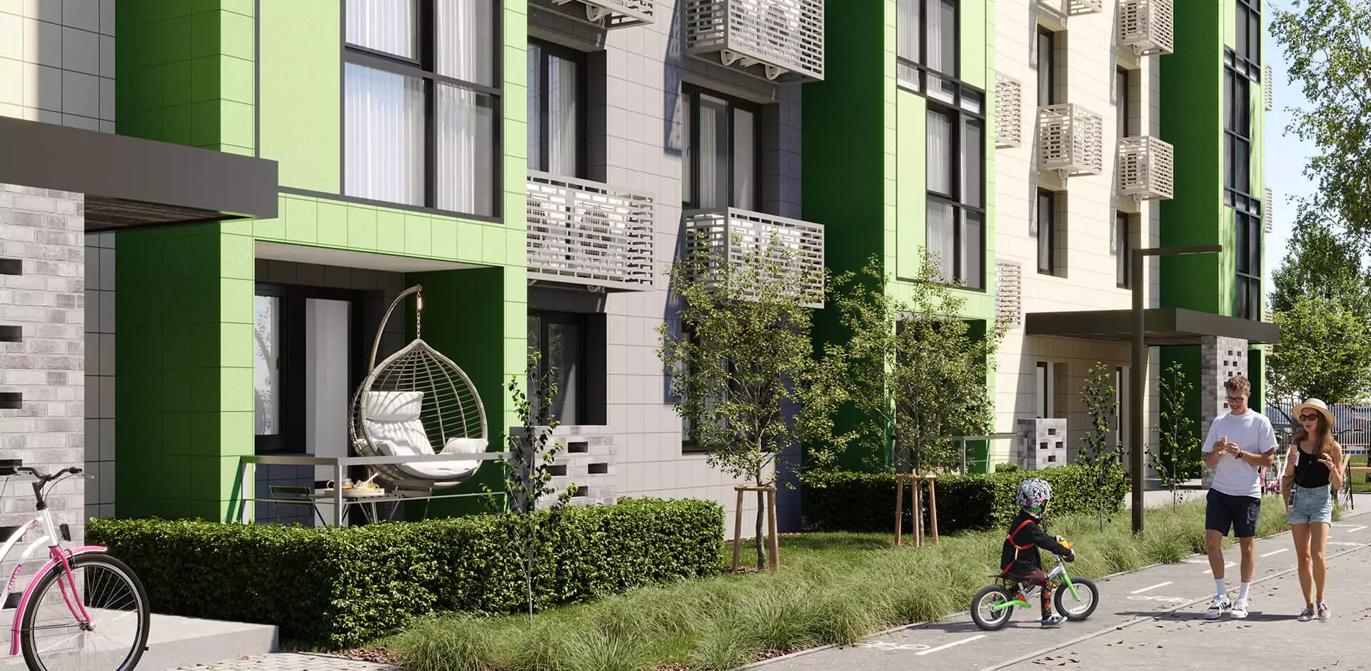Живите в ЖК «Грин», чтобы замедлить ритм города и наслаждаться природой. Вас ждет закрытый зелёный двор, небольшое количество квартир на этаже, велодорожки и урбан-грядки, квартиры с отдельным входом и террасы, будто в собственном загородном доме.